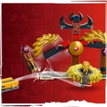 Vstúpte do sveta NINJAGO a zažite výbušnú akciu so setom Dračie Spinjitzu – bojová aréna. Dve minifigúrky, Arin a zlý Ras, sa stretnú v súboji dobra a zla pomocou dračích spinnerov, ktoré vystrelíte z praktických odpaľovačov. Vďaka odpojiteľným živlom moci a zlatým vylepšeniam môžete svoje spinnery neustále posilňovať.