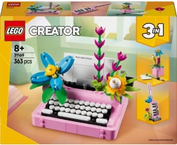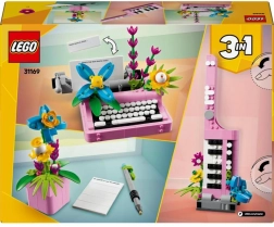 S touto stavebnicou LEGO Creator 3 v 1 môžu fanúšikovia kvetov, umenia a dizajnu vytvoriť niekoľko zaujímavých modelov. Tento mini písací stroj je ozdobený štyrmi farebnými kvetmi a obsahuje pohyblivú klávesnicu, valec a list papiera z kociek.