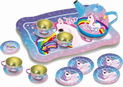 Magická čajová súprava v roztomilom kufríku s motívom jednorožca poteší každú malú hostiteľku. Obsahuje kanvicu, 4 šálky, 4 podšálky a 4 tanieriky, všetko z odolného kovu. Praktický kufrík s rukoväťou má rozmery 25 × 19 × 10 cm – ideálny na cesty aj skladovanie.