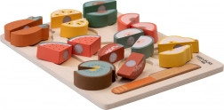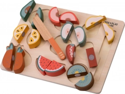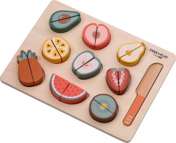 - Doštička, drevený nôž, 9 druhov ovocia (každé rozpojiteľné na polovice)