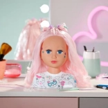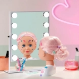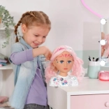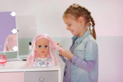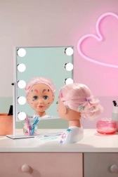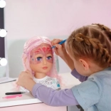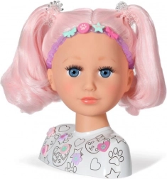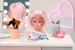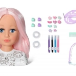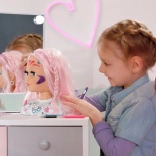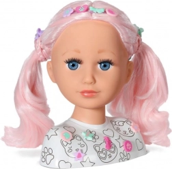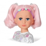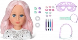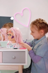 Táto kreatívna česacia hlava je ideálna pre malé stylistky a vizážistky. Dlhé ružové vlasy z vysoko kvalitného nylónu skvele držia tvar a sú perfektné na česanie, vrkoče aj zapletanie. Pomocou priložených fixiek a šablóny možno navyše jednoducho vytvárať originálny make-up a zábavné motívy na tvári.