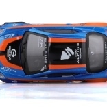 Modro‑oranžová farebná schéma s číslom 76 a sponzorskými logami verne kopíruje skutočný pretekársky špeciál, čo z modelu robí atraktívny kúsok do zbierky.