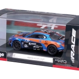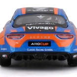 Detailný model pretekárskeho vozidla Alpine A110 Cup v ikonickej modro‑oranžovej pretekárskej liverii prináša realistické proporcie, čisté potlače sponzorov a voľne sa otáčajúce kolesá pre plynulé pojazdenie. Tónované okná, tvarované svetlomety a aerodynamická silueta zvýrazňujú športový charakter originálu.