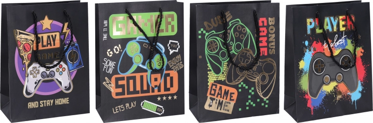 Krásna darčeková taška vhodná pre každú príležitosť, dostupná v strednej veľkosti a štyroch rôznych dizajnoch. Perfektná voľba pre detské oslavy a špeciálne darčeky.