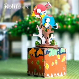 Vychutnajte si stavbu detailného farebného modelu dvojice vtáčikov na vetve, ktorý po dokončení oživí vašu poličku príjemným zvukom aj jemným pohybom. Kvalitné drevené diely s presnou potlačou do seba presne zapadajú a spolu s kovovými prvkami tvoria stabilnú mechanickú hraciu skrinku.