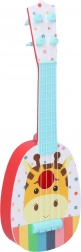 Táto detská gitara s motívom afrických zvierat je ideálna pre malých začiatočníkov. Má štyri umelé struny a dĺžku 37 cm, čo z nej robí perfektnú voľbu na ľahké držanie a hranie.