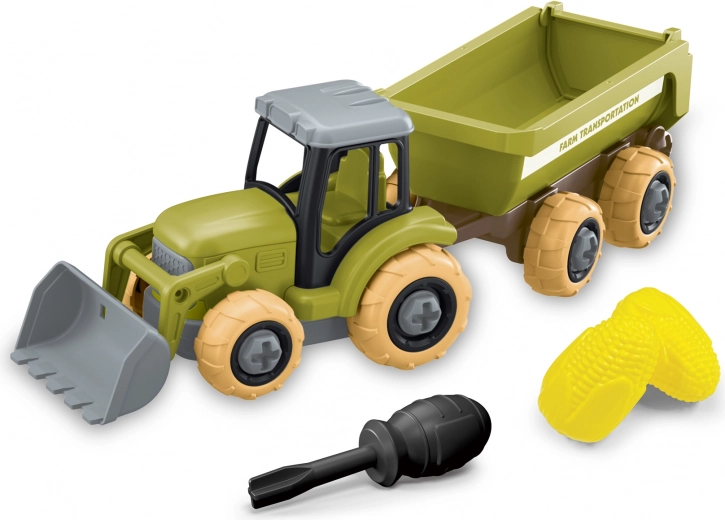 Urobte radosť malým staviteľom praktickou sadou, ktorá spája hru a učenie. Skrutkovací traktor s funkčným nakladačom a vlečkou sa dá vďaka priloženému detskému skrutkovaču ľahko rozobrať na časti a opäť zložiť, čo deťom pomáha pochopiť základy konštrukcie a rozvíja trpezlivosť.