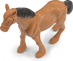 Model je vyrobený z kvalitného a odolného plastu, ktorý znesie každodenné hranie. Celková dĺžka súpravy je približne 27 cm, koník meria asi 8 cm – ideálna veľkosť pre malé ruky a veľkú porciu zábavy.