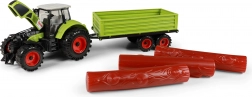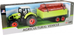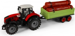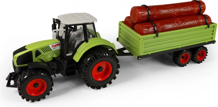 Objavte zábavu na farme s detailne spracovaným traktorom s prívesom na drevo s celkovou dĺžkou cca 45 cm. Traktor jazdí na setrvačník pre plynulý pohyb, príves má voľnobeh a možno ho jednoducho odpojiť. Klády možno ľahko zložiť, čo podporuje rozvoj jemnej motoriky a predstavivosti.