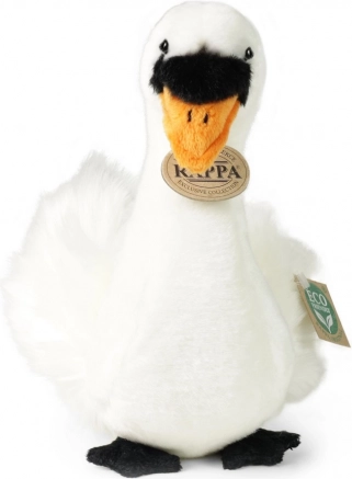 Táto hebká plyšová labuť je ideálnym kamarátom na maznanie, hranie aj dekoráciu detskej izbičky. Kvalitný materiál a starostlivé spracovanie zabezpečujú dlhú životnosť a bezpečnosť pre deti od narodenia. Výplň z recyklovaných PET fliaš je šetrná k prírode a na dotyk nerozoznateľná od bežnej výplne.