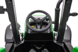 Tento akumulátorový traktor je navrhnutý pre deti, ktoré milujú objavovanie sveta traktorov. Zelené a čierne farebné prevedenie spolu s odolnými kolesami zaisťujú dlhú životnosť a prispôsobenie sa rôznym terénom.