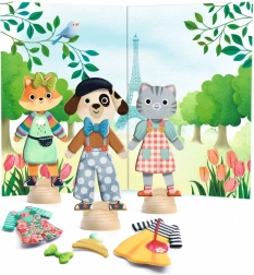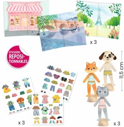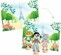 Vydajte sa do Paríža s kreatívnou sadou od Djeco a nechajte deti tvoriť vlastné príbehy. Čakajú ich 3 drevené postavičky so stojančekmi, viac ako 45 opakovane použiteľných oblečkov a obrázkový návod na jednoduché objavovanie. Ideálna kolážová aktivita pre deti 3–6 rokov, ktorá rozvíja fantáziu aj jemnú motoriku.