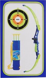Táto kompletná sada pre malých lukostrelcov obsahuje všetko, čo deti potrebujú na bezpečný tréning mierenia: plastový luk s dĺžkou 70 cm, 3 šípy s prísavkami, puzdro na šípy cez plece a farebný terč. Vďaka prísavkám sa šípy bezpečne prichytia na hladké povrchy a hra je tak vhodná do detskej izby aj na záhradu.