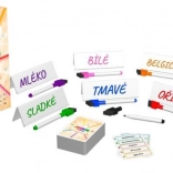 - 110 kariet, 7 podstavcov, 7 zmazateľných popisovačov, pravidlá hry