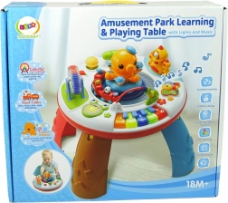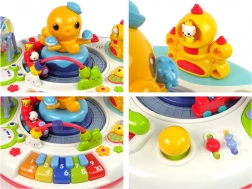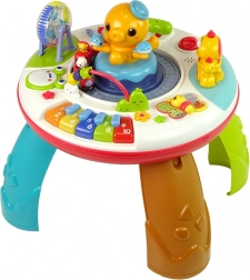 Stolík je vybavený klaviatúrou s melódiami, otočnými postavičkami a osvetlenými tlačidlami v tvare zvieratiek, ktoré po stlačení vydávajú veselé zvuky a svetelné efekty. Plastový stolík je navrhnutý tak, aby ľahko priťahoval pozornosť dieťaťa.