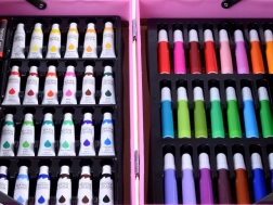 Sada obsahuje farby, štetce, pastelky a mnoho ďalšieho, ideálna pre vytváranie rôznych umeleckých diel.