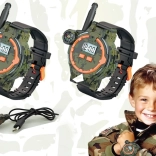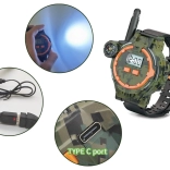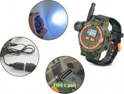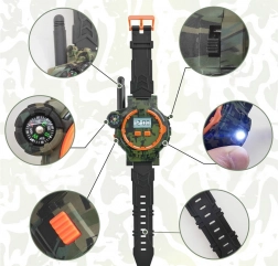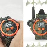 Tieto multifunkčné hodinky vo vojenskom štýle umožňujú deťom komunikovať na vzdialenosť až 200 metrov vďaka vstavané vysielačke. Perfektný doplnok pre vonkajšie hry s priateľmi, hodinky zaujmú kvalitným plastovo-gumovým spracovaním v kamufláži s čiernym páskom.