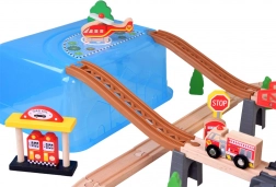 Sieť tratí obklopuje mesto, čo umožňuje deťom plánovať trasy a tvoriť vlastné príbehy. Pohyblivý vlak môže prepravovať pasažierov a tovar pre realistické herné situácie.