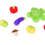 V košíku nájdete rôzne zeleninové prvky a doplnky, ktoré sú verne navrhnuté tak, aby napodobňovali skutočné potraviny. Táto hra podporuje deti v učení názvov zeleniny a ich využití v kuchyni.