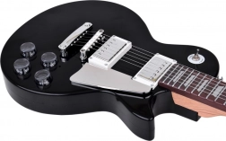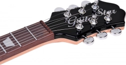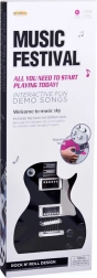 Lesklé čierne telo, kovové struny a ovládacie prvky napodobňujú skutočnú elektrickú gitaru a podporujú pravý hudobný zážitok.