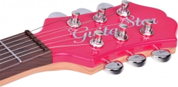 Hlavica s logom Guitar Star a kovové ladiace mechaniky zabezpečujú stabilitu ladenia a motivujú deti k pravidelnému hraniu.