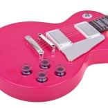 Lesklé prevedenie, dvojica snímačov a ovládacie gombíky vytvárajú dojem skutočnej elektrickej gitary – ideálne pre prvé hudobné kroky.