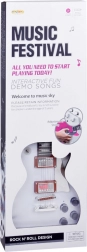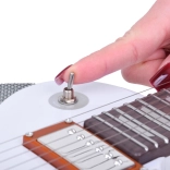 - Realistický dizajn: klasický tvar elektrickej gitary, chrómované prvky a ovládače.