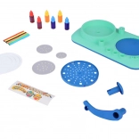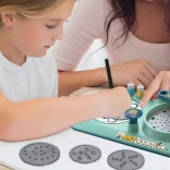 - 49 dielov – obsahuje farebné fixky, farby, otočnú platformu a šablóny pre spirograf.