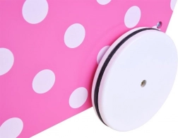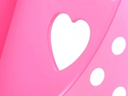 Ružová farba s bielymi bodkami a srdcovitým výrezom dodáva kočiaru moderný a príťažlivý vzhľad.