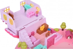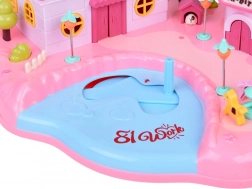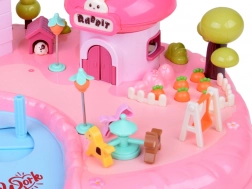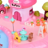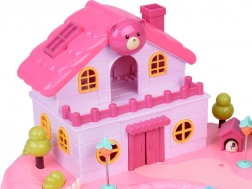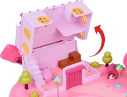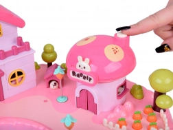Domček ponúka viacúrovňový interiér so scénami na každodenné hranie: útulná spálňa s posteľou, otváracia skriňa, kúpeľňa s vaňou a umývadlom, kuchynka s chladničkou aj toaletný stolík. Svetelné a zvukové efekty spúšťané tlačidlami umocnia atmosféru hry a podsvietený nápis RABBIT reaguje do rytmu melódie.