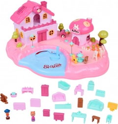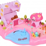 Objavte čarovný dom v záhrade: otvorený domček s obchodom v tvare muchotrávky, jazierkom s ovládačom a ihriskom pozýva deti k nekonečnému rozprávaniu príbehov. Skrytá magnetická indukcia uvádza do pohybu figúrky a detaily scény – stačí posúvať ovládač na jazierku a nechať ich vyraziť do záhradky, na ihrisko alebo do obchodu.