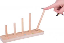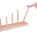Manipulácia s farebnými dielikmi podporuje úchop, presnosť a koordináciu oko–ruka pri každom nasadení na kolík.
