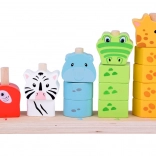 Každý stĺpik zodpovedá číslu 1–5 a pomáha deťom pochopiť poradie aj množstvo pri skladaní zvieratiek.