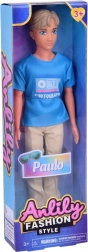 Bábika Paulo od Anlily vyniká moderným vzhľadom, svetlými vlasmi a modrými očami. Je oblečená do štýlového modrého trička s potlačou a béžových dlhých nohavíc, doplnených hnedými topánkami. Vďaka pohyblivým končatinám je ideálna na realistické pózovanie a scénky.