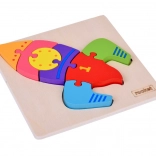 Obľúbená didaktická hračka podľa princípov Montessori, ktorá deťom pomáha pochopiť vzťah tvarov a častí k celku. Farebné segmenty rakety sa ľahko uchopujú a vkladajú do frézovanej dosky, takže si deti precvičia presnosť aj trpezlivosť.