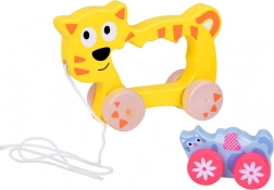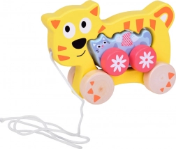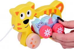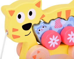 Táto drevená ťahacia mačacia rodinka je ideálny spoločník pre prvé kroky. Väčšia mačka má v tele otvor na jednoduché uchopenie, pripojenú šnúrku a stabilné kolieska. Menšie mačiatko verne nasleduje, čo deťom prináša radosť z pohybu a posilňuje ich prirodzenú zvedavosť.