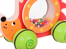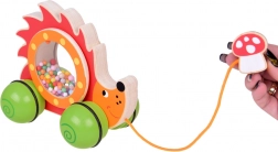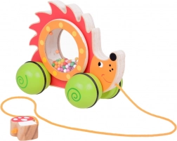 Drevený ťahací ježko podporuje prirodzený rozvoj detí – od prvých krôčikov až po rozvoj jemnej aj hrubej motoriky. Pri jazde sa vo vnútri priehľadnej komory otáčajú farebné guličky, ktoré vytvárajú vizuálny aj zvukový efekt a udržiavajú detskú pozornosť.