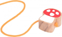 Ergonomická šnúrka zakončená drevenou muchotrávkou uľahčuje uchopenie aj riadenie hračky malými rúčkami.
