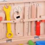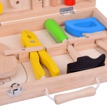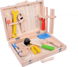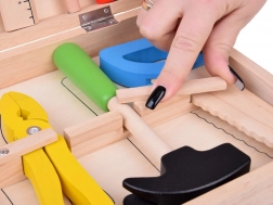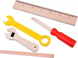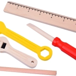 Kladivo, píla, kliešte, skrutkovač, kľúče, pravítko a ďalšie diely napodobňujú skutočné nástroje a zároveň zostávajú bezpečné na detskú hru.