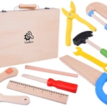 Tento drevený set náradia je navrhnutý tak, aby presne padol do malých rúčok a motivoval deti k aktívnemu objavovaniu sveta opráv a tvorenia. Vďaka realistickým, no bezpečným tvarom sa deti hravou formou zoznamujú s tým, ako fungujú kladivo, píla, skrutkovač či kľúče.