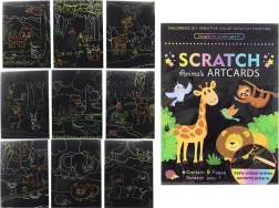 Táto sada vyškrabávacích obrázkov je perfektnou voľbou pre malých umelcov. Pod čiernou vrstvou sa skrývajú farebné motívy, ktoré deti objavia postupným vyškrabávaním pomocou dreveného drievka. Jednoduchá technika prináša skvelé výsledky bez neporiadku.