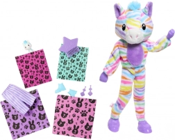 Bábika BARBIE Cutie Reveal zo série „Sladké sny“ prináša kombináciu mäkučkého plyšového kostýmu a módnej hry. Farebný prevlek zebry premeníte na štýlové oblečenie – vrátane obojstrannej bundy s kvetinovou potlačou a efektom dúhovej zebrej kože. V balení čakajú aj topánky, šortky a šperky pre nekonečné mixovanie štýlov.