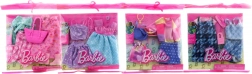 Táto módna sada pre bábiky BARBIE prináša všetko, čo malé stylistky potrebujú na vytvorenie originálnych lookov. V balení nájdete dva kompletné outfity – vždy buď šaty, alebo kombináciu topu a spodného dielu – a k nim dva štýlové doplnky, ktoré doladia každý outfit k dokonalosti.