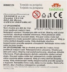 Produkt je dodávaný na karte s rozmermi 17 × 18 × 2 cm a skvele sa hodí do bazéna aj na dovolenku. Jednoduché použitie, bezpečný tvar a ideálna veľkosť robia z torpéda perfektný doplnok pre aktívnu vodnú zábavu.