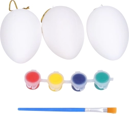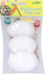 - Kompletná sada: 3 plastové vajíčka, farby a štetec