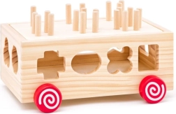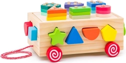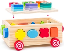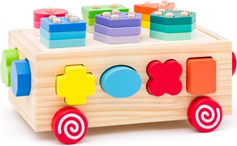 Tento drevený vozík je ideálnou hračkou pre malé deti, ktorá kombinuje zábavu s učením. Vozík ponúka rozpoznávanie tvarov a rozvoj jemnej motoriky vďaka farebným geometrickým tvarom, ktoré deti môžu vkladať do zodpovedajúcich otvorov.