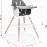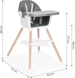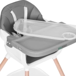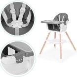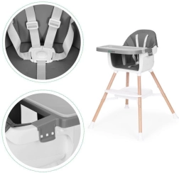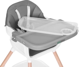 Táto moderná stolička uľahčí spoločné stolovanie – dieťa môže sedieť pri stole, pozorovať, napodobňovať a osvojovať si správne návyky. Široká tácka slúži nielen na jedenie, ale aj na hru, kreslenie či stavaníe kociek, takže sa rýchlo stane obľúbeným kúskom detského nábytku.