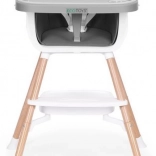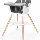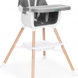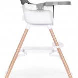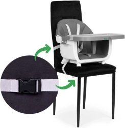 Varianta 2 v 1 umožňuje odňať nohy a sedadlo bezpečne pripnúť popruhmi na bežnú stoličku – ideálne na cesty aj k stolu v jedálni.