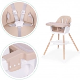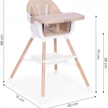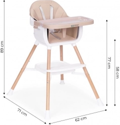 Vitajte pri stole! Táto stolička uľahčí spoločné stolovanie od prvých príkrmov. Široký tácek poskytne priestor na jedlo, hru aj tvorenie, zatiaľ čo mäkké, odolné čalúnenie z ľahko umývateľnej eko kože zaistí pohodlie aj jednoduchú údržbu. Moderný vzhľad sa hodí do každého interiéru.