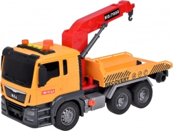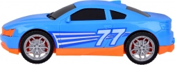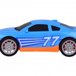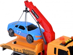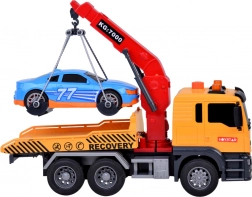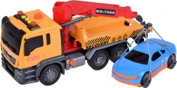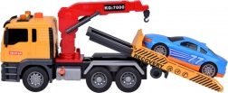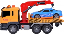 Časťou setu je tiež športové modré auto, ktoré dokonale padne na odťahovku. Celá hračka je vyvedená v realistických farbách - žltá, sivá, červená a modrá.